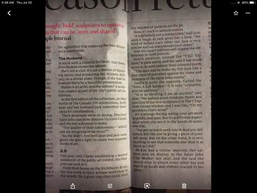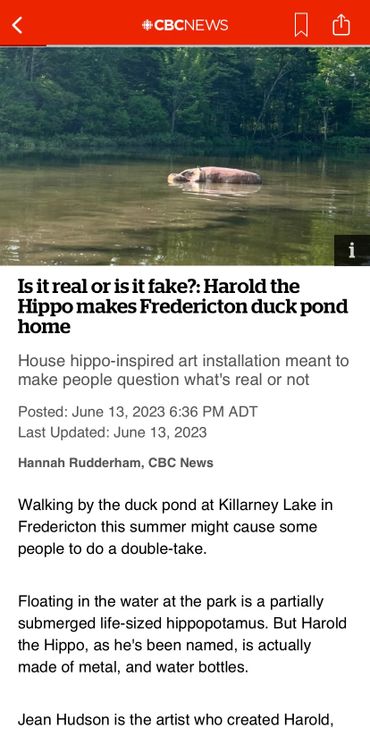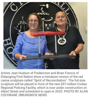 Jean Hudson creates large art pieces, along with her partner Jack, in the peacefulness of their gardens in Prince William, near Fredericton, NB. With sculptures in corporate offices, private collections, and on public display, she gathers creativity from the nature that surrounds her and from salvaged items. Seeing thrown away items in an imaginative way and having observers of her sculptures seek thought about our discard culture and re-evaluate how they contend with their contribution of used items to our environment is the inspiration for her art. Her passion for a better planet runs deep in her soul.